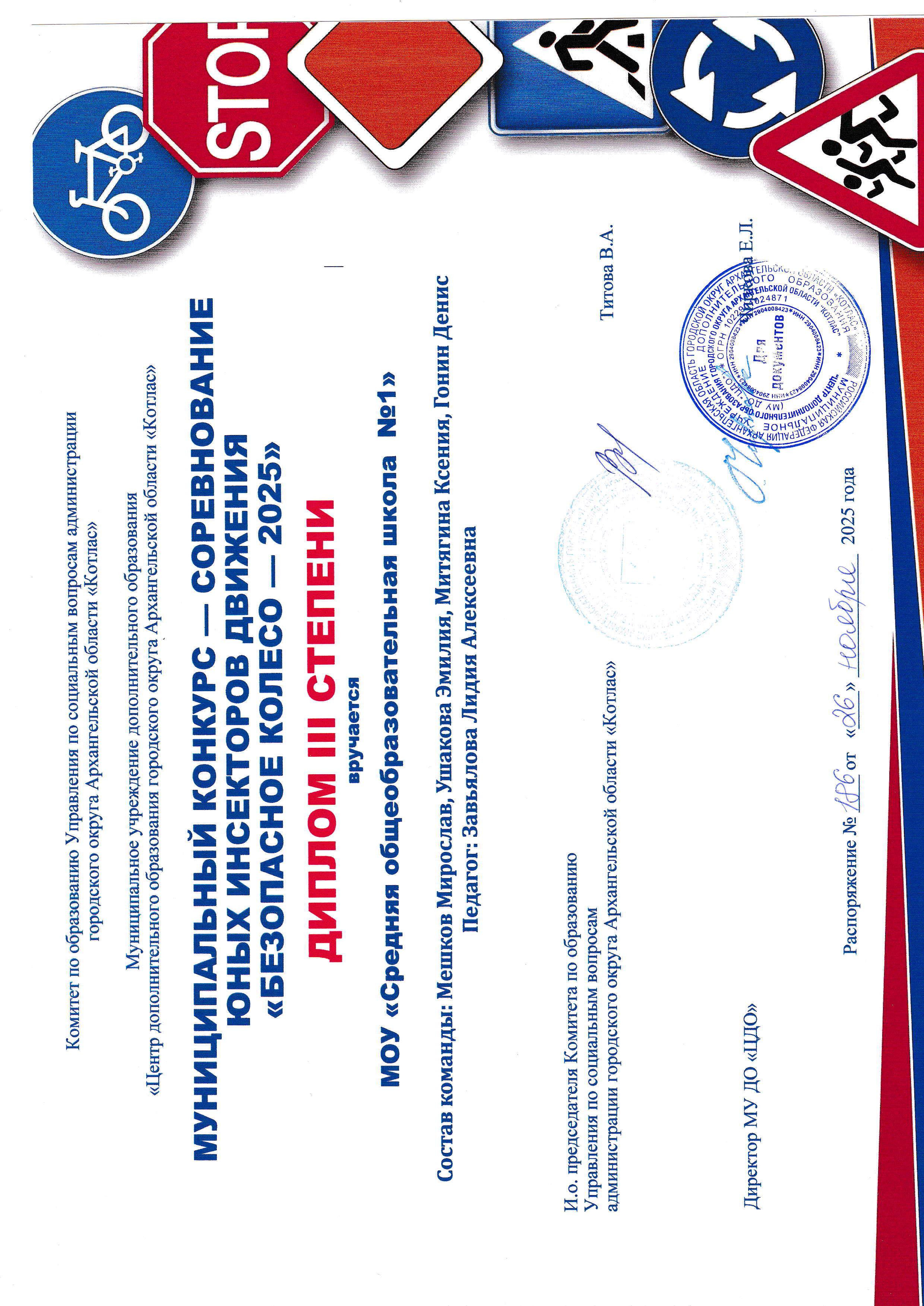Участие в муниципальном конкурсе – соревновании юных инспекторов движения “Безопасное колесо – 2025” (Диплом III степени)