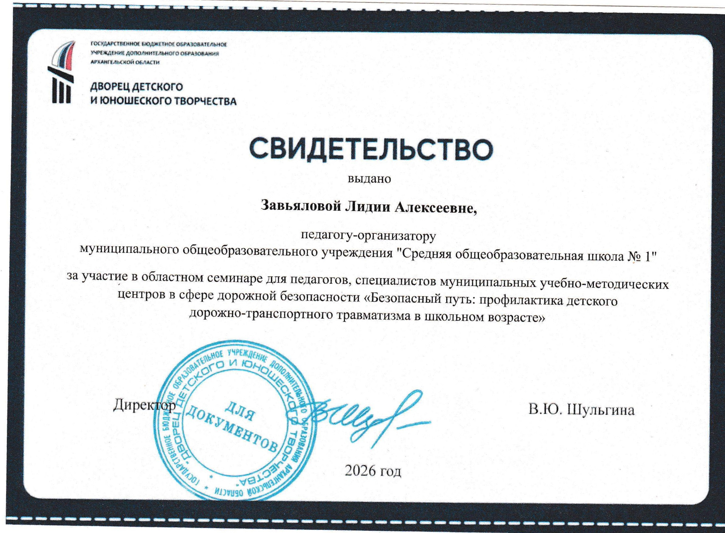 Участие в областном семинаре для педагогов, специалистов муниципальных учебно-методических центров в сфере дорожной безопасности “Безопасный путь: профилактика детского дорожно-транспортного травматизма в школьном возрасте” (свидетельство)